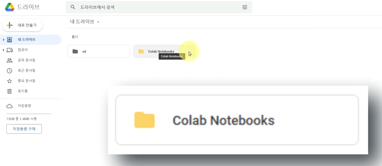 Colab Notebooks 폴더를 들어가고