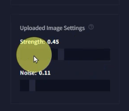업로드 이미지 셋팅이라는 부분인데요. Strength와 Noise로 되어 있습니다. 스트렝스가 좌측에 가까울수록 원본에 가까워지며 스트렝스가 우측에 가까울수록 원본과 거리가 멀어지는 결과물이 나옵니다. 노이즈는 기존에 없는 것들을 추가하는 것인데요. 노이즈를 너무 높게 설정하면 내가 의도치 않는 것들이 자꾸 추가되니 기본 설정값으로 해두시는 것이 좋습니다.