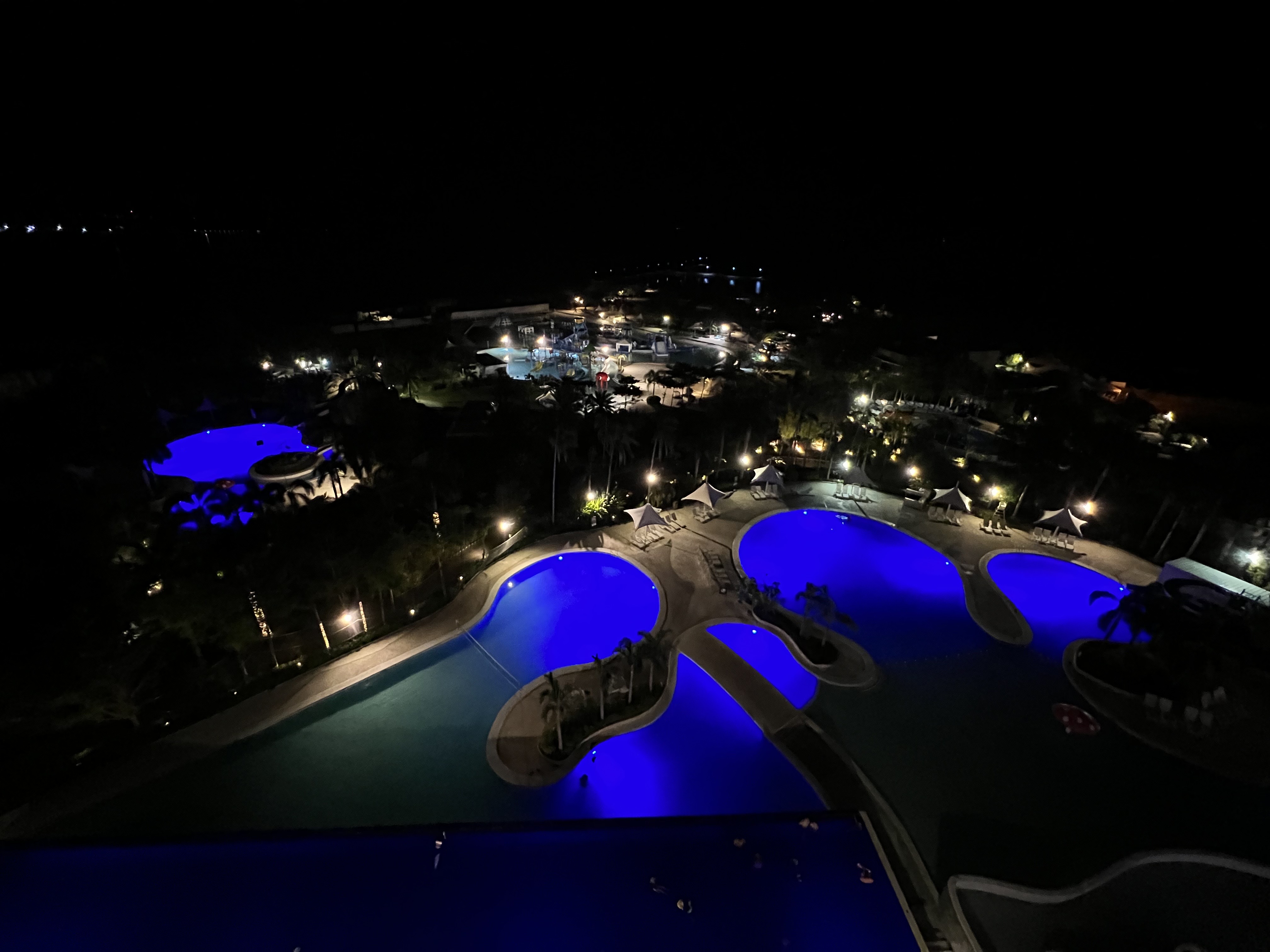 루프탑 바에서는 음식도 팔고 음료도 판다. 석양 질때 가면 좋았겠으나 우리는 일정상 그러지 못했고, 아주 저녁에 가서 음료수만 마시면서 수영장 야경을 구경했다. 음료 가격도 비싸지 않았고, 먹을만했으며, 뷰는 참 좋았다.