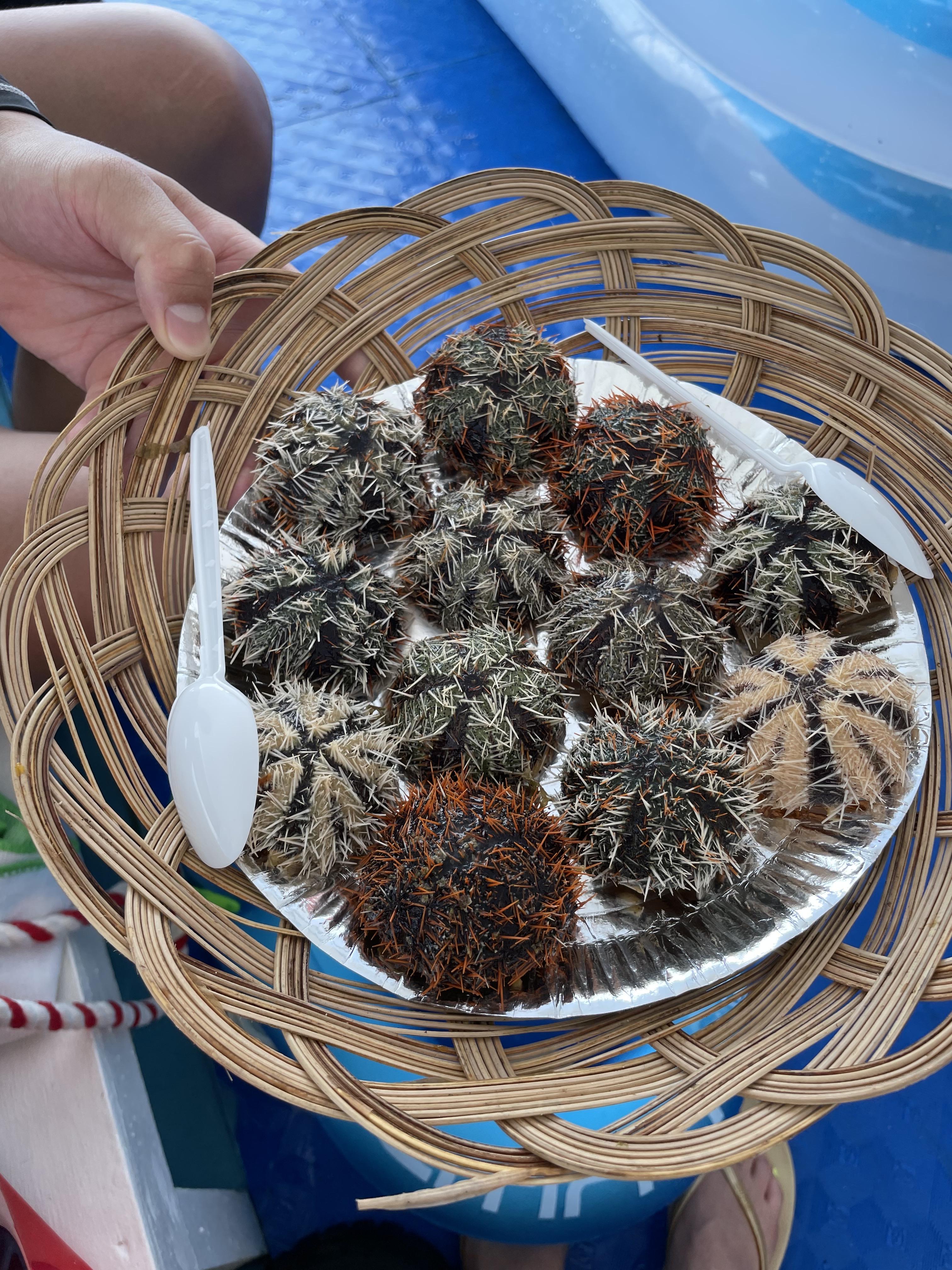 그런데 갑자기 오넬 등장 뭔가 한봉지 잔뜩 들고 오길래 뭔가 했더니 자연산 성게와 고동을 잡아왔따!